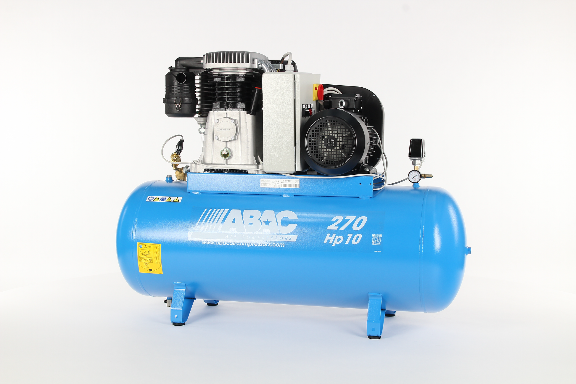 This ABAC PRO B7000 270 FT10 single stage belt drive compressor is a 10 HP static compressor mounted on a 270 litre receiver, suitable for a workshop with three phase.