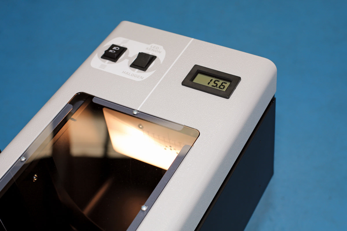 - Vertically adjustable light box with adjustable checking panel. Wheeled base to allow easy checking of both sides.