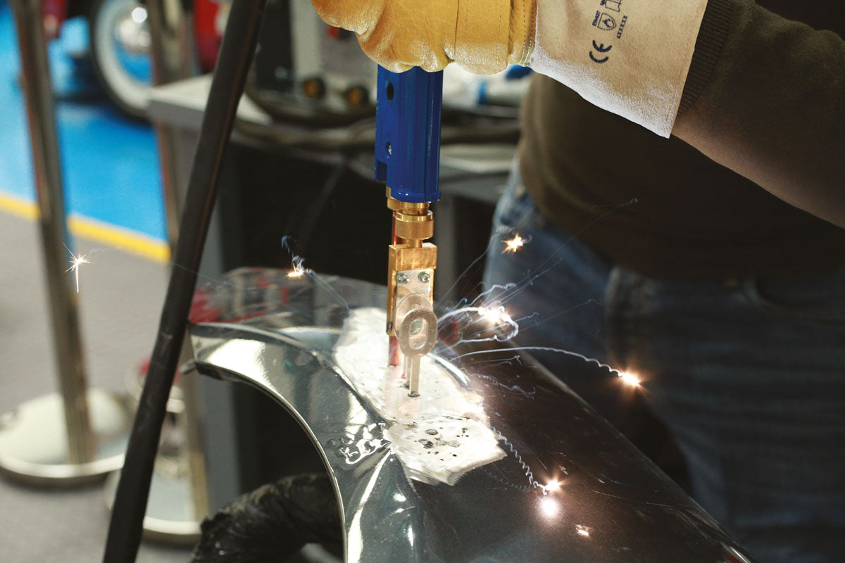 Aluminium work station incorporating an aluminium MIG welder combined with the revolutionary aluminium panel repair system, all housed on a mobile trolley.