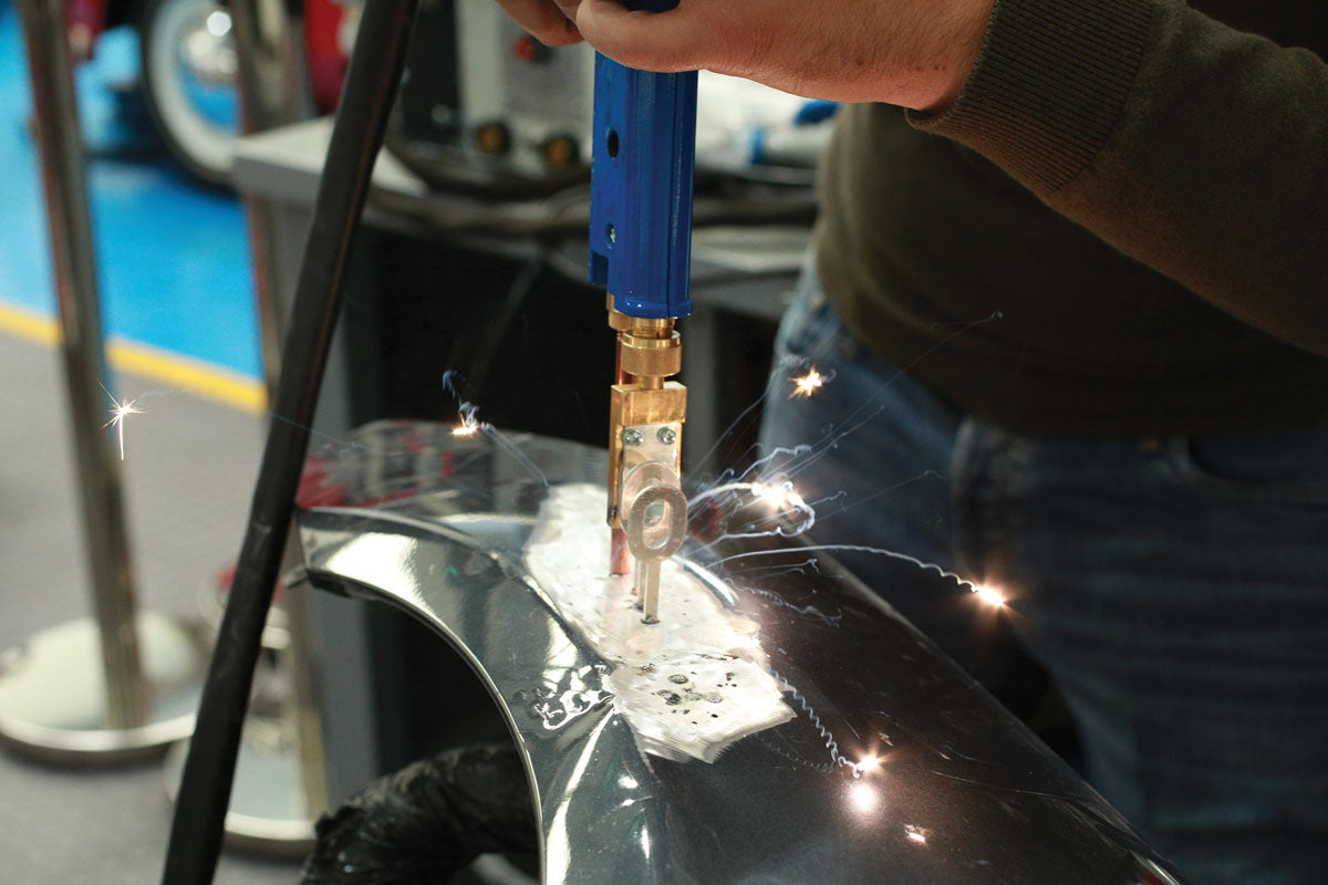- Uses the integrated puller on aluminium welder to ease out dents using special aluminium welding pins. Aluminium washers and pins are re-usable.