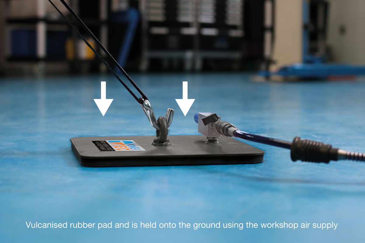 - Pulling force up to 550kg. Counterbalanced by a pneumatic suction anchoring plate, therefore no fixings required.