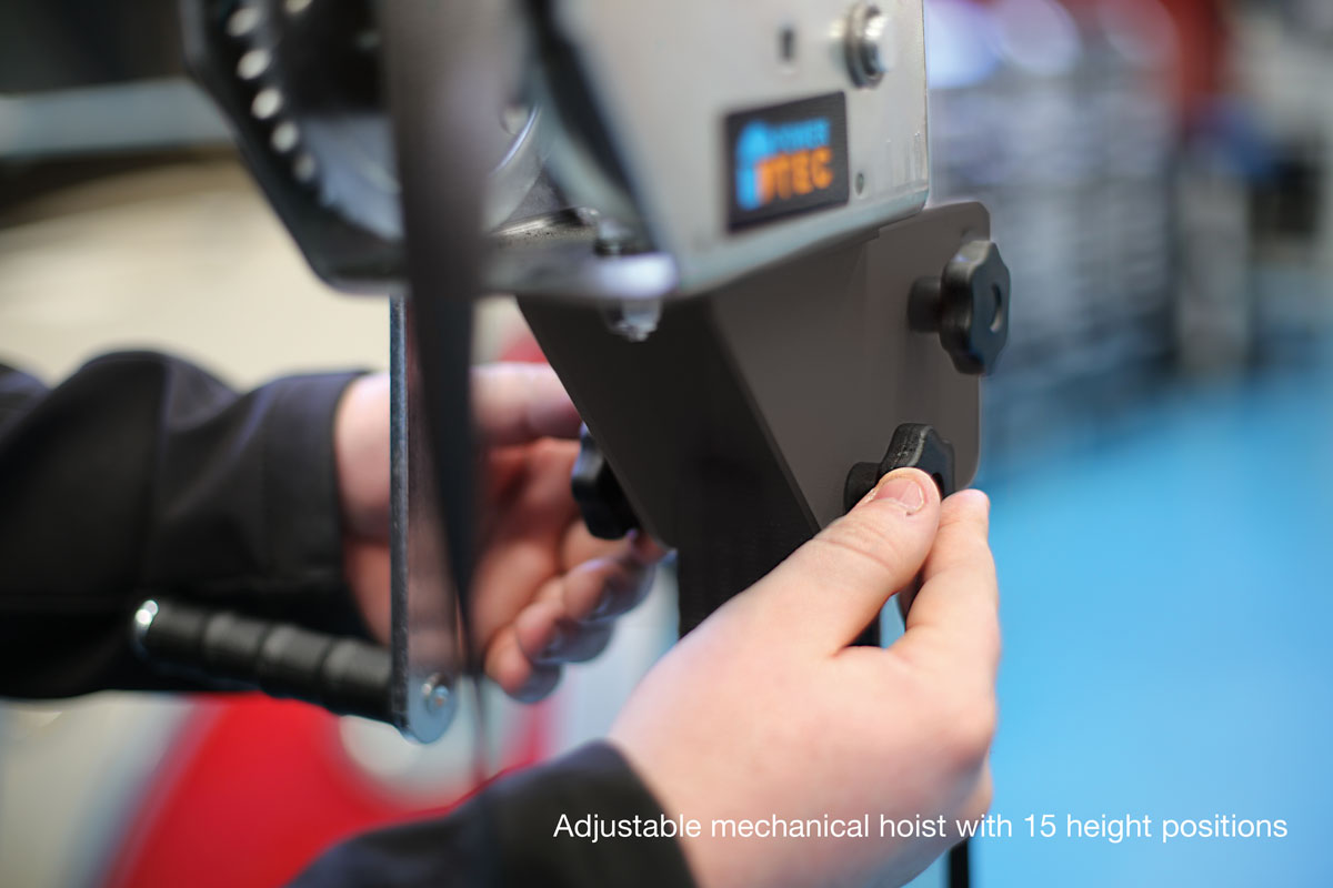 A fast, easy to install pulling tower with a height adjustable mechanical hoist (extension pole available to raise height for commercial vehicles 92659). Ideal for use on steel and aluminium panel repair.