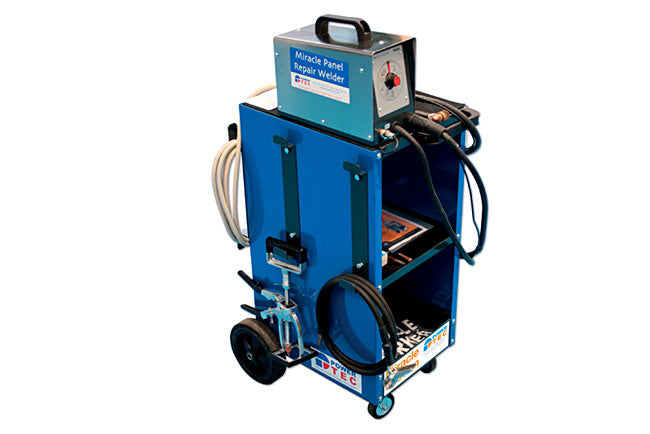 A state of the art panel repair system that offers profitable, high quality, fast turnaround panel repair. Speed up the repair process, while increasing the element of labour within each repair job and reducing the need for panel replacement. This Base Kit is supplied with slim trolley, assembled to incorporate the necessary equipment to hold the Evo Miracle Welder and standard easy puller.