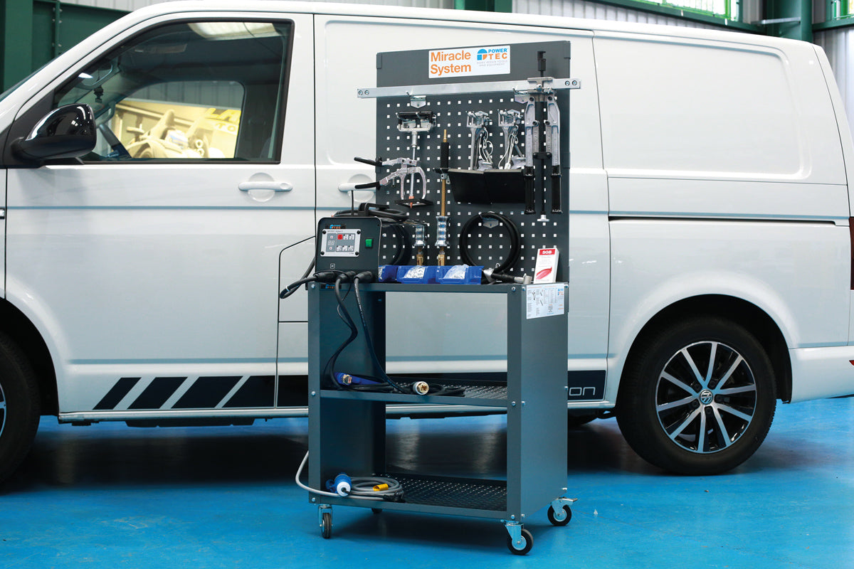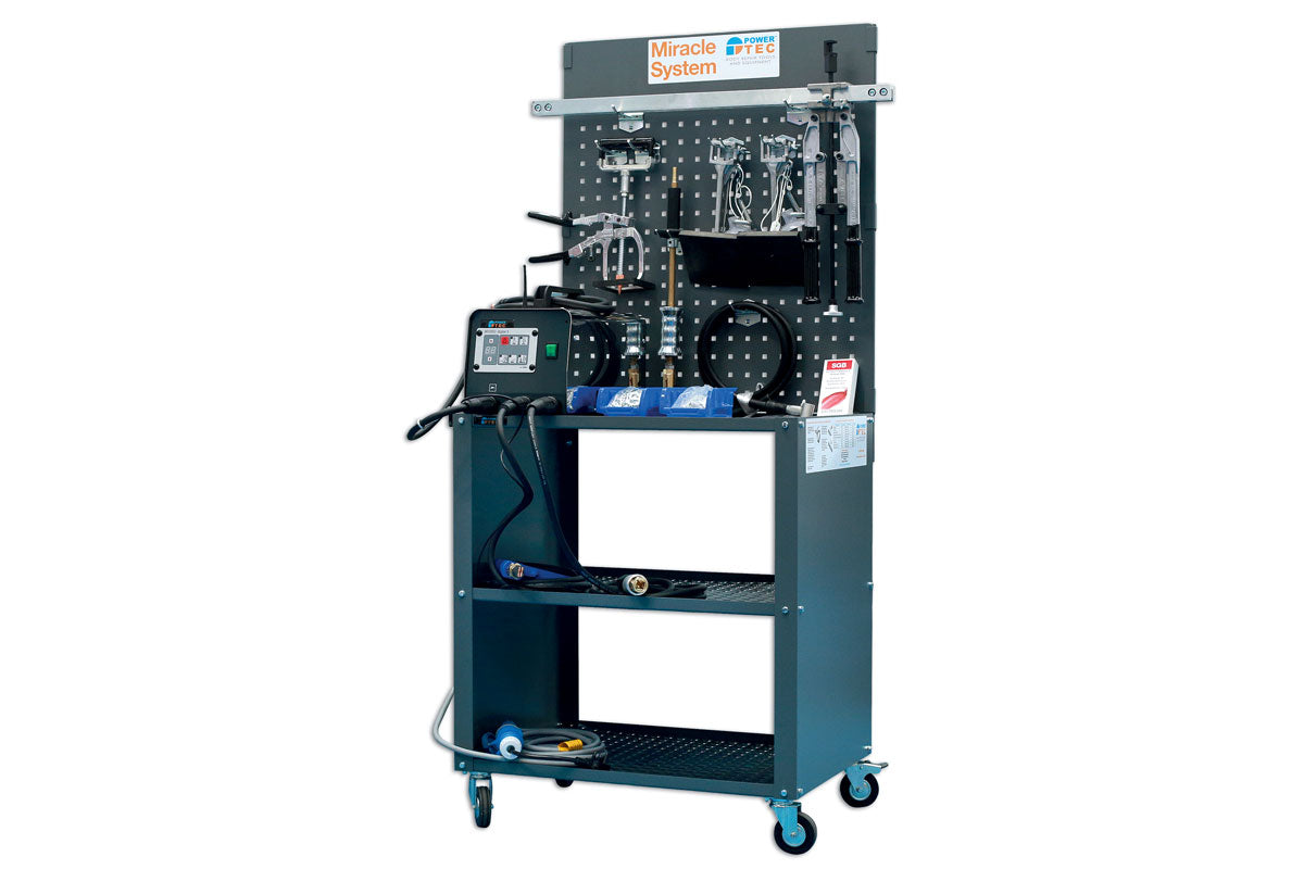 This Deluxe kit takes the Miracle System Standard Kit, Part No. 92170, and upgrades the welder to the Power-TEC Evo Twin Welder, Part No. 92546. All housed on the larger Miracle Platinum tool trolley, Part No. 92114.