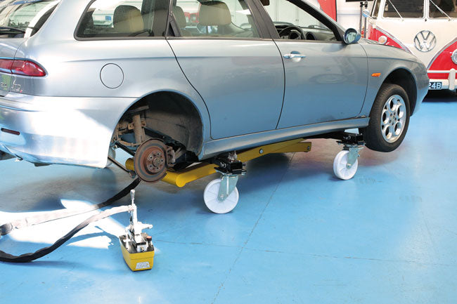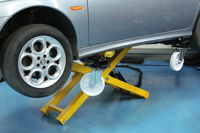 - Wheels are easily fitted to the lifting arms, allowing the lift to be moved with the car, freeing up workshop space.